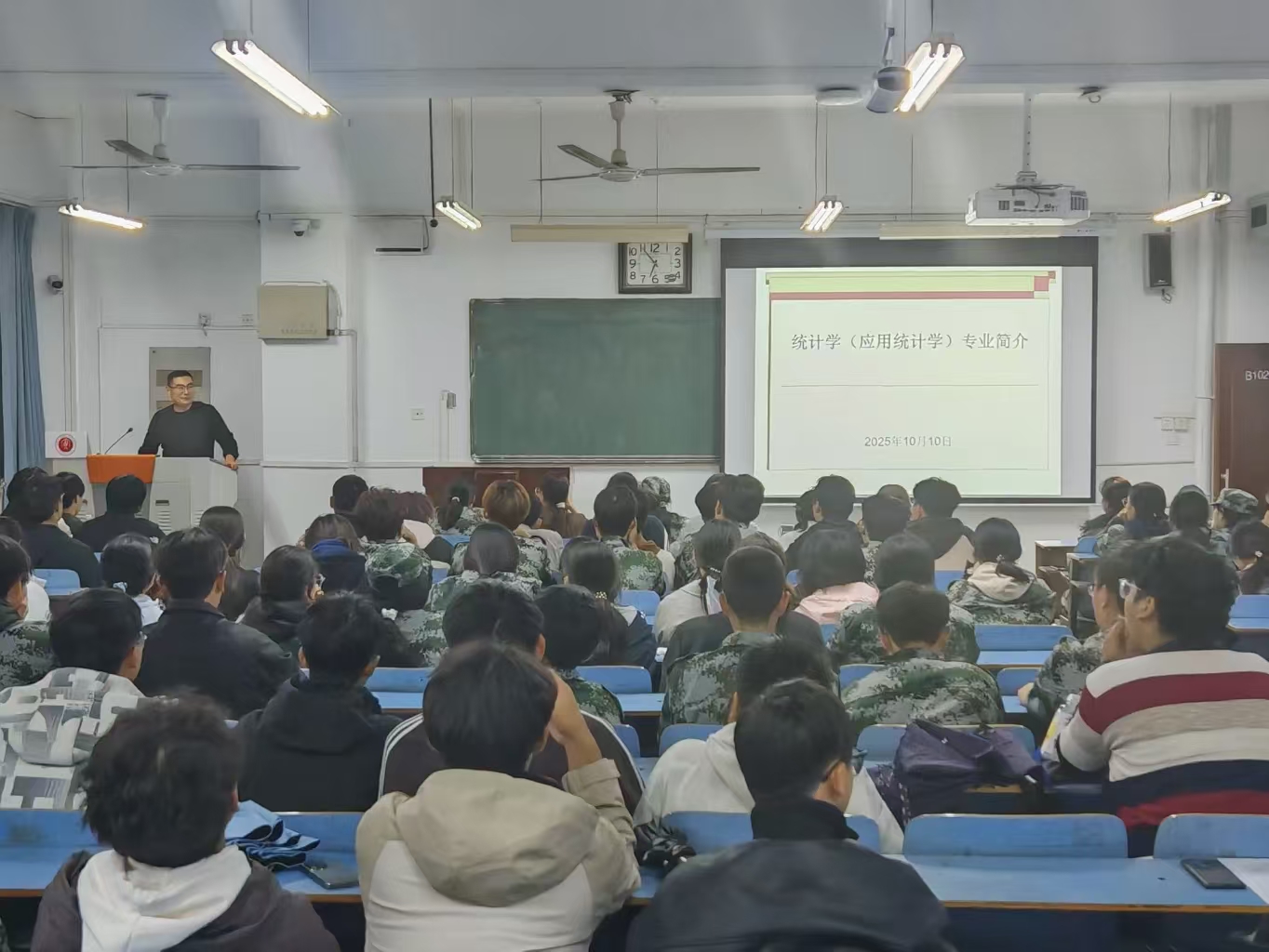 为了深化学生对统计学基本理论和方法的掌握,提升他们在数据分析、预测决策等实际应用中的专业技能,10月10日晚,我院在和容楼B102教室举办2025级新生统计学、应用统计学专业思想教育讲座。本次讲座由我院统计学系主任王超主讲,2025级统计学、应用统计学全体新生参加。