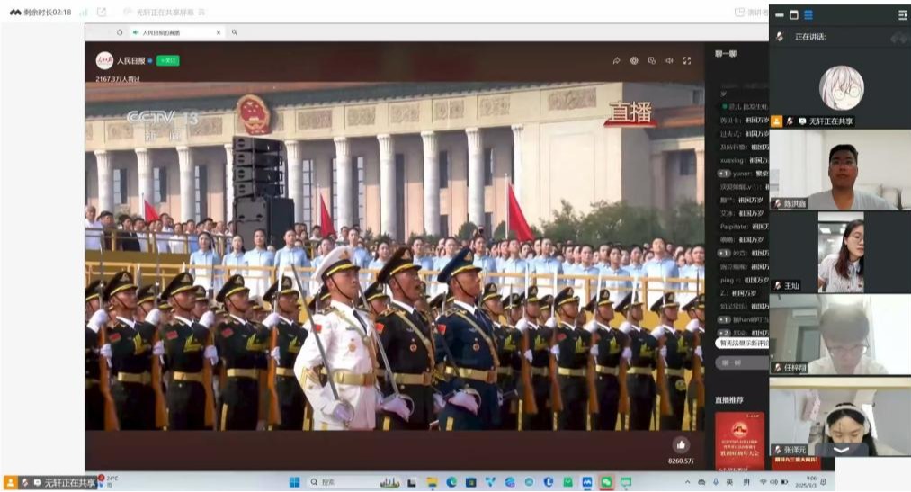 9月3日上午,数学与统计学院党委组织全体师生党员通过线上线下相结合方式,集中观看中国人民抗日战争暨世界反法西斯战争胜利80周年阅兵式直播,共同见证这一庄严时刻。