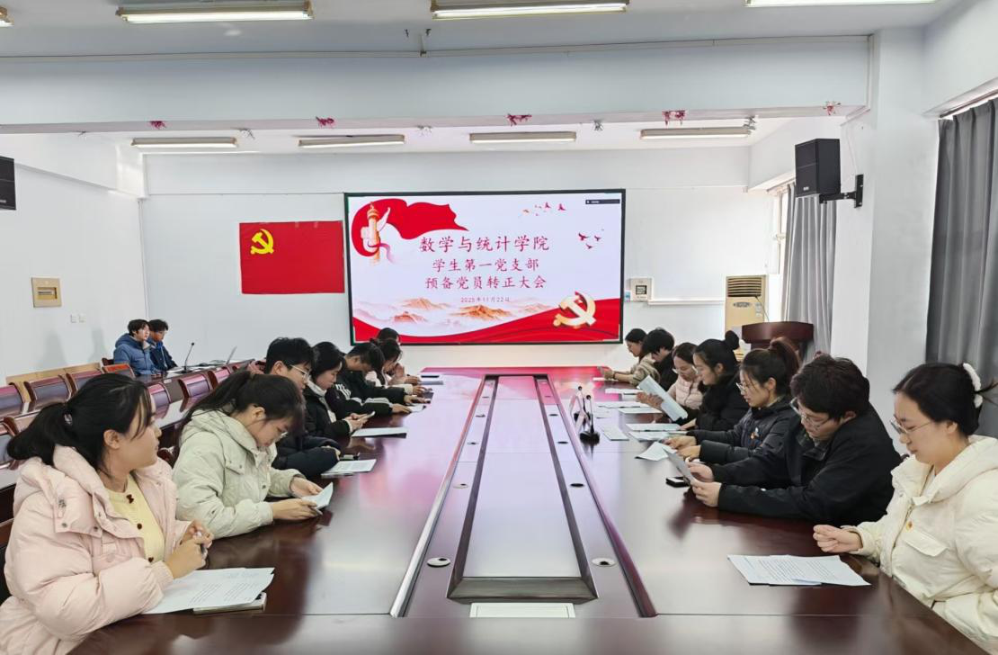 11月22日,数学与统计学院学生第一党支部在和义楼321召开秋季预备党员转正大会,讨论陈好锐等5名同志的转正事宜。党支部书记苏林晓主持会议。