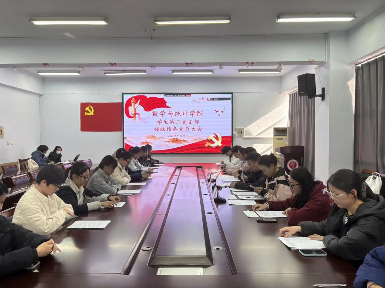 11月26日,数学与统计学院学生第二党支部在和义楼321召开全体党员大会,审议接收李静怡等5名同志为中共预备党员事宜。党支部书记陈洪鑫主持会议。