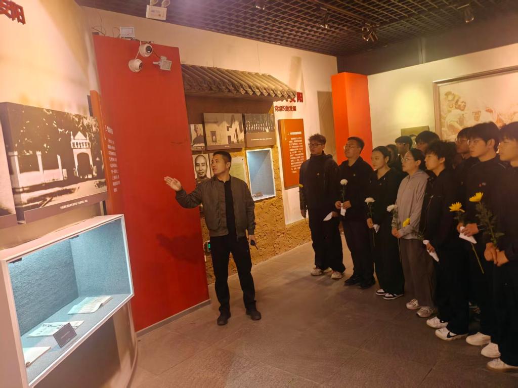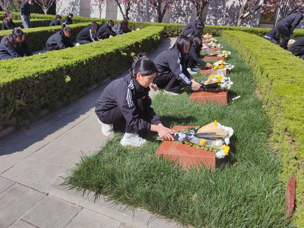 烈士陵园广场上,同学们整齐列队、神情肃穆。庄严的国歌声中,全体人员肃立致敬,学生党支部书记代表向革命先烈敬献花圈,全体人员面向烈士纪念碑鞠躬致敬。随后,大家在讲解员引导下参观安阳革命史纪念馆,认真聆听革命故事,驻足观看珍贵文物、历史文献和纪实照片,深入感悟安阳革命历程与烈士们的光荣事迹,深刻体会革命先辈矢志报国的崇高情怀,接受了深刻的红色教育和思想洗礼。活动最后,同学们前往革命烈士墓前,敬献菊花、擦拭墓碑,再次鞠躬致敬,表达对先烈的追思与敬仰。