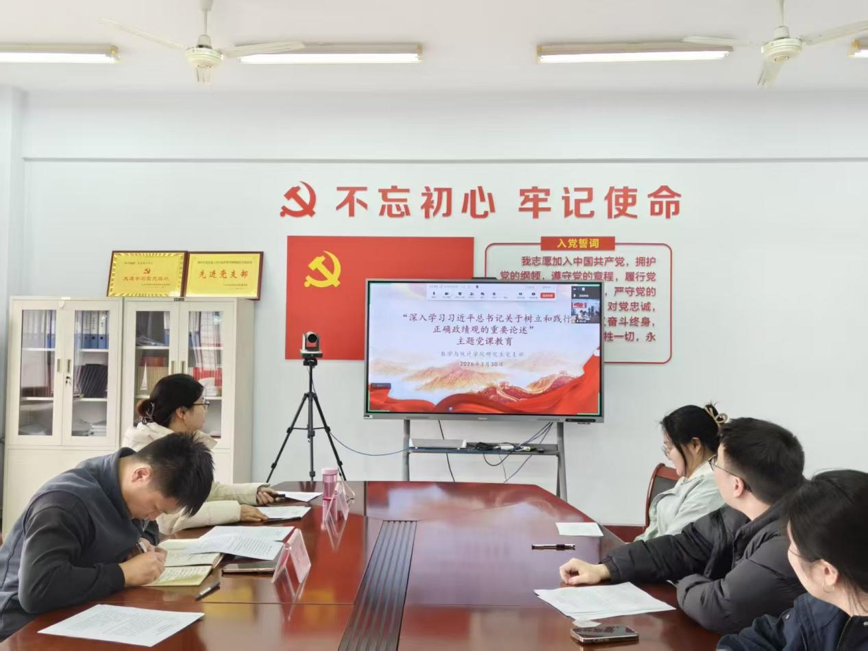 3月30日,研究生党支部以“深入学习习近平总书记关于树立和践行正确政绩观的重要论述”为主题开展专题学习。支部书记宋宾带领党员研读《习近平关于树立和践行正确政绩观论述摘编》第一章,深刻领会核心要义与实践要求,并组织观看专题学习视频深化理解。他强调,研究生党员必须坚守学术初心,坚决杜绝学术浮躁,以严谨求实的治学态度、扎实过硬的学术作风,将正确政绩观内化于科研学习与日常行动中,践行党员使命。