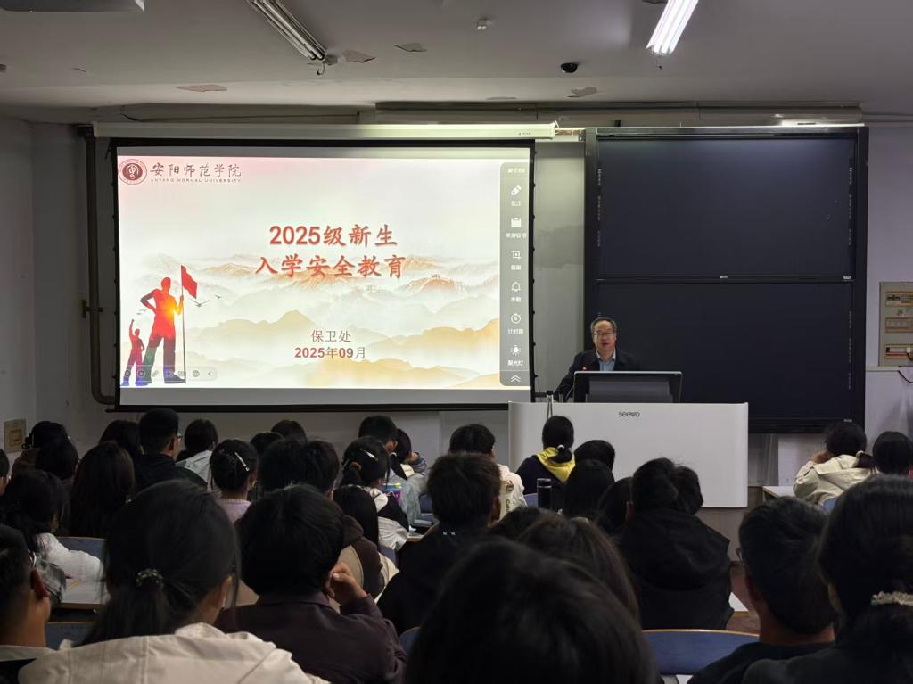 为进一步筑牢校园安全防线,提升新生的安全意识与自我防护能力,10月11日下午,我院在和鸣阶梯1101、1102举办2025级新生入学安全教育专题讲座。本次讲座特邀我校保卫处处长李驰担任主讲,学院2025级辅导员徐宁馨以及全体新生参加。