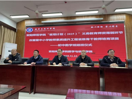 11月23日,2025年义务教育师资薄弱环节改善暨中小学教师素质提升工程--省级骨干教师培育项目初中数学班结业典礼在和义楼116举行。数学与统计学院院长姚合军、副院长魏超、班主任张雪峰、彭桢以及全体参训学员参加了本次结业典礼,结业典礼由刘玉军老师主持。