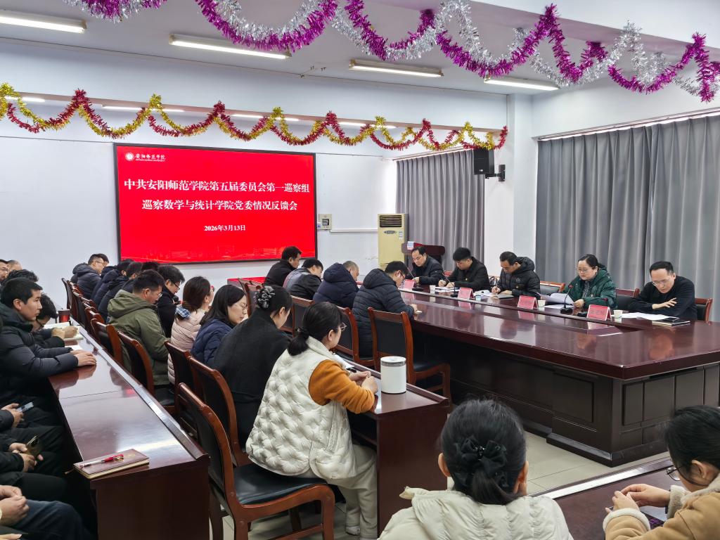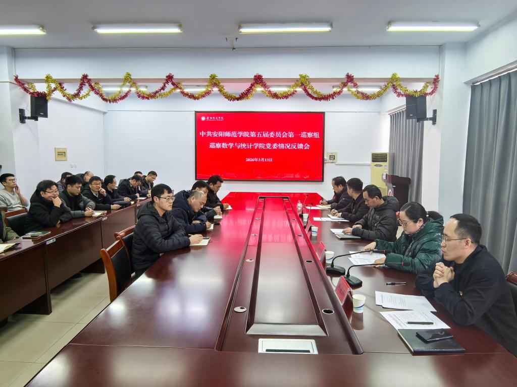 3月13日下午,校党委第一巡察组巡察数学与统计学院反馈会在和义楼321召开。校巡察办、第一巡察组负责同志出席会议,学院领导班子成员、全体教职工参加会议。会议由学院党委书记姚亚辉主持。